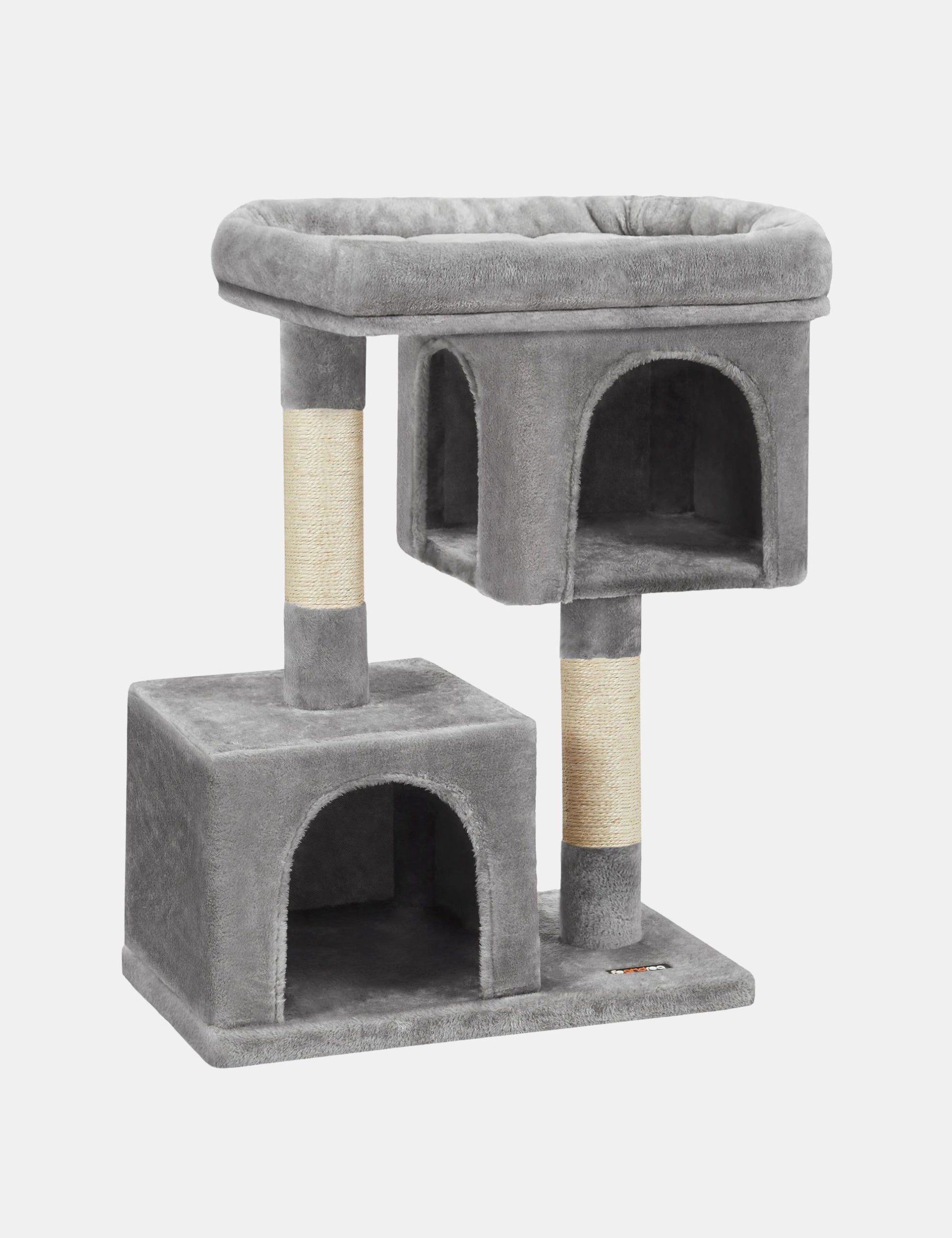 Associant tissu doux, sisal et panneaux robustes, cet arbre à chat favorise des moments de détente comme d’activité. Les surfaces accueillantes et les poteaux dédiés accompagnent les instincts naturels du chat, dans un ensemble harmonieux et fiable.