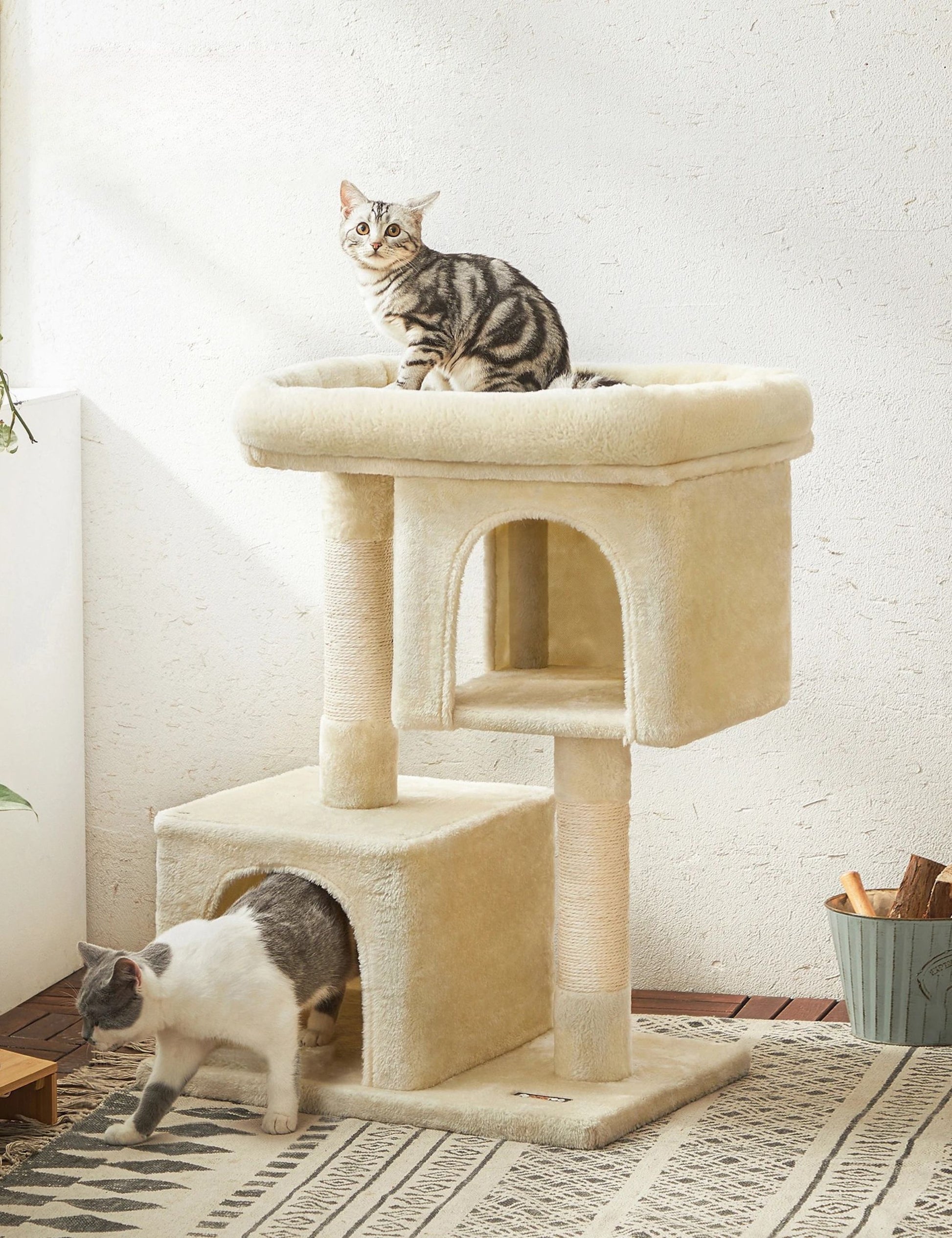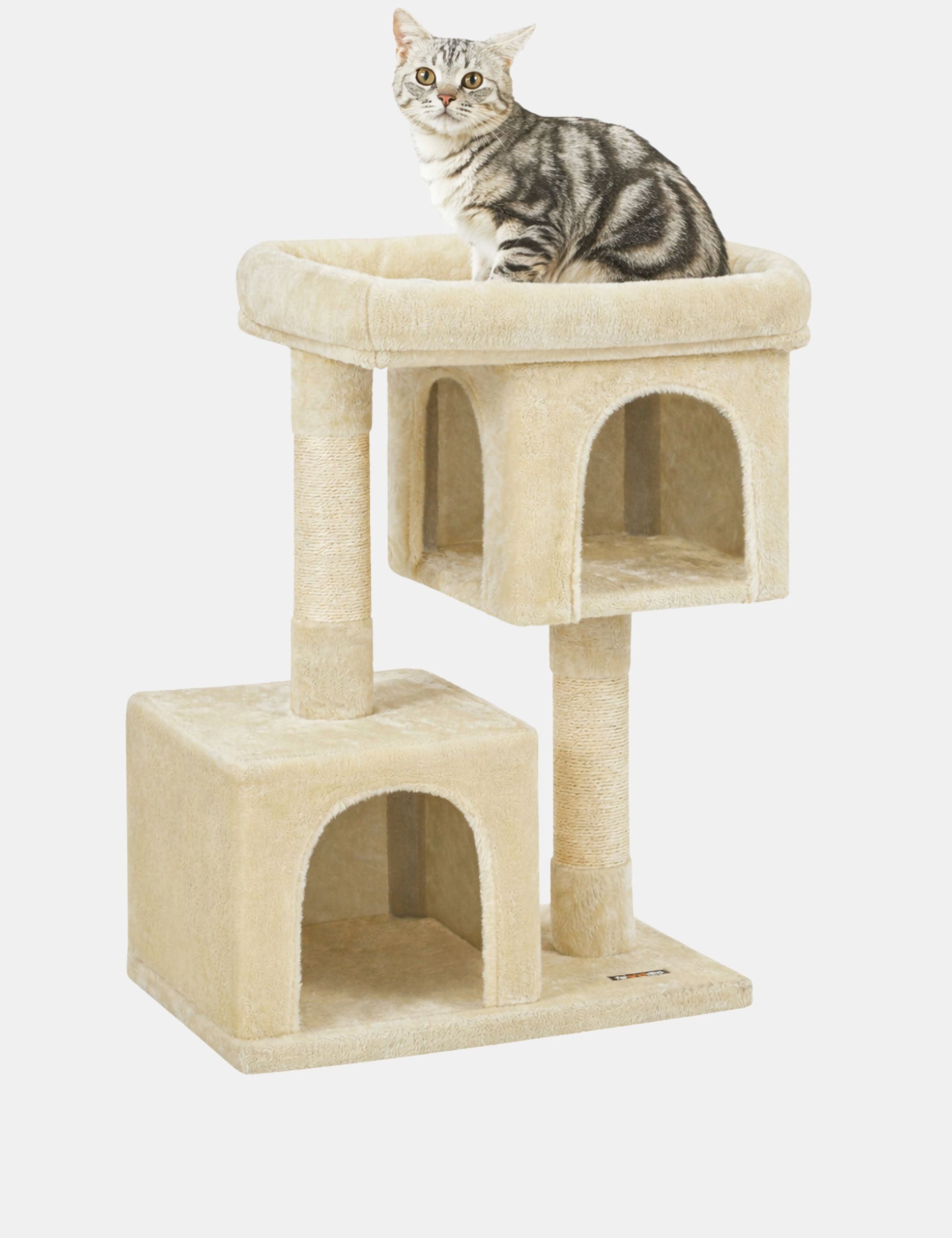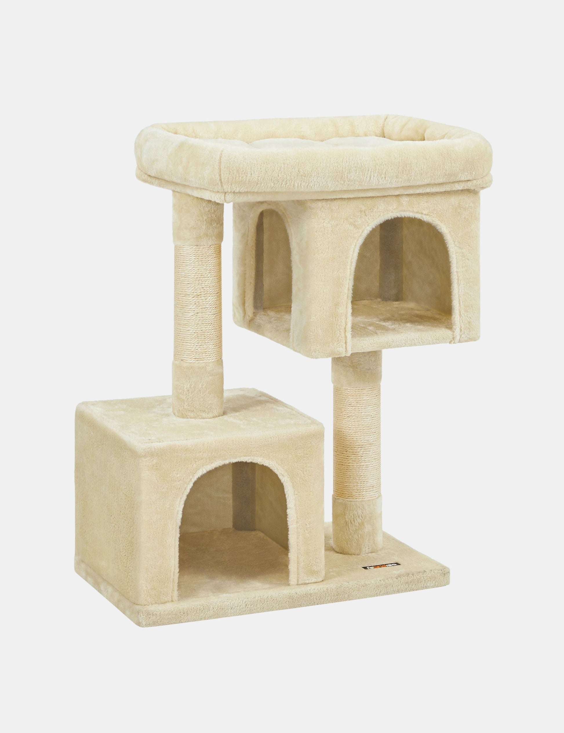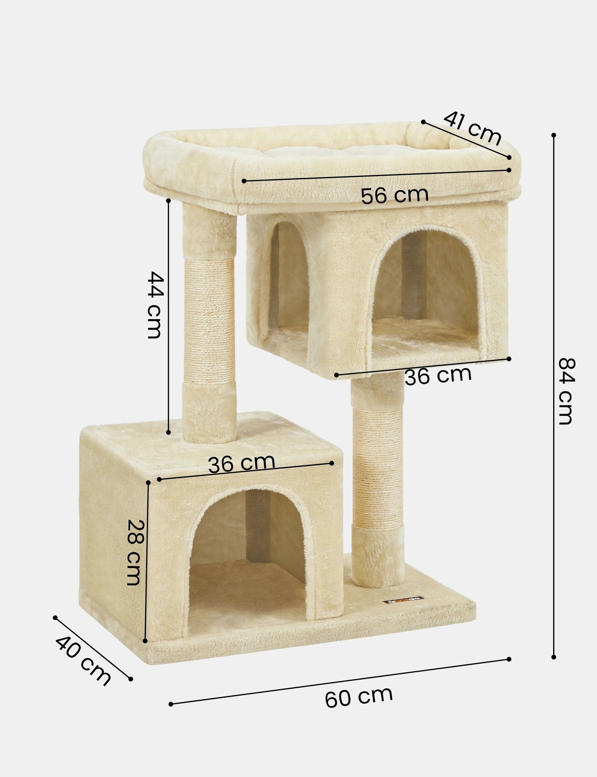Ce mini arbre à chat s’intègre naturellement dans votre intérieur grâce à ses lignes équilibrées et sa teinte beige apaisante. Pensé pour offrir repos, observation et griffades, il crée un espace rassurant où votre chat retrouve calme et bien-être au quotidien.